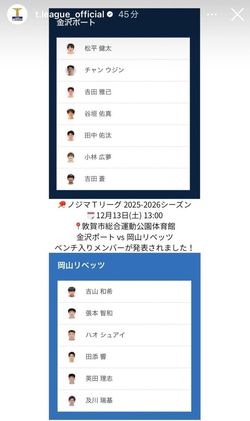 金沢ポート vs 岡山リベッツ ノジマTリーグ2025-2026 2025年12月13日(土) 敦賀市総合運動公園体育館 ハイライト 実況解説なし【卓球 Tリーグ公式】