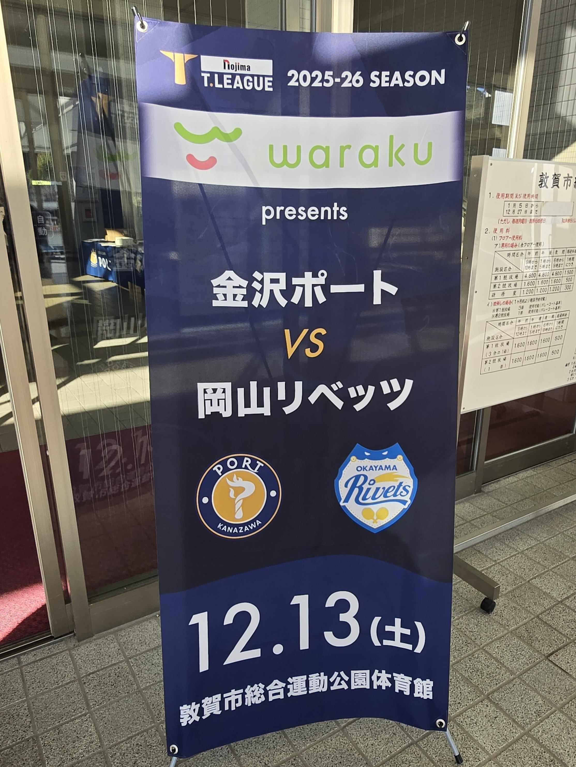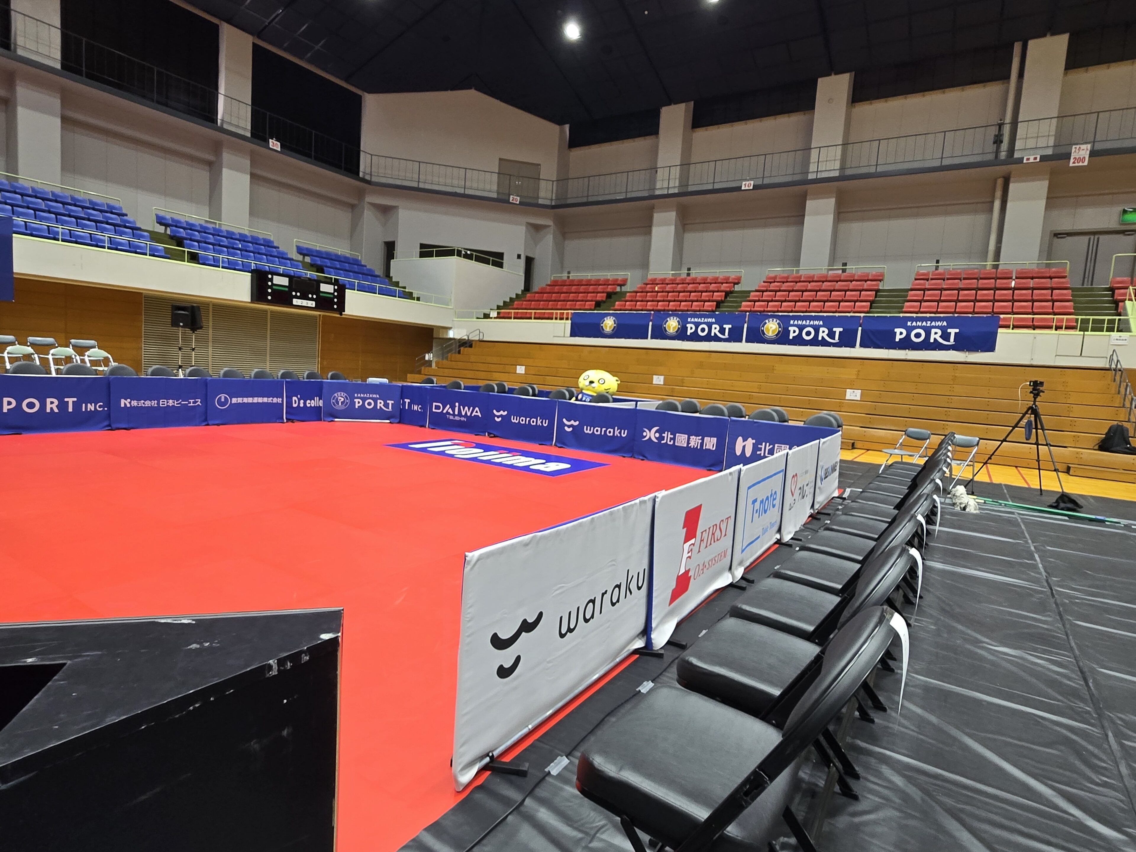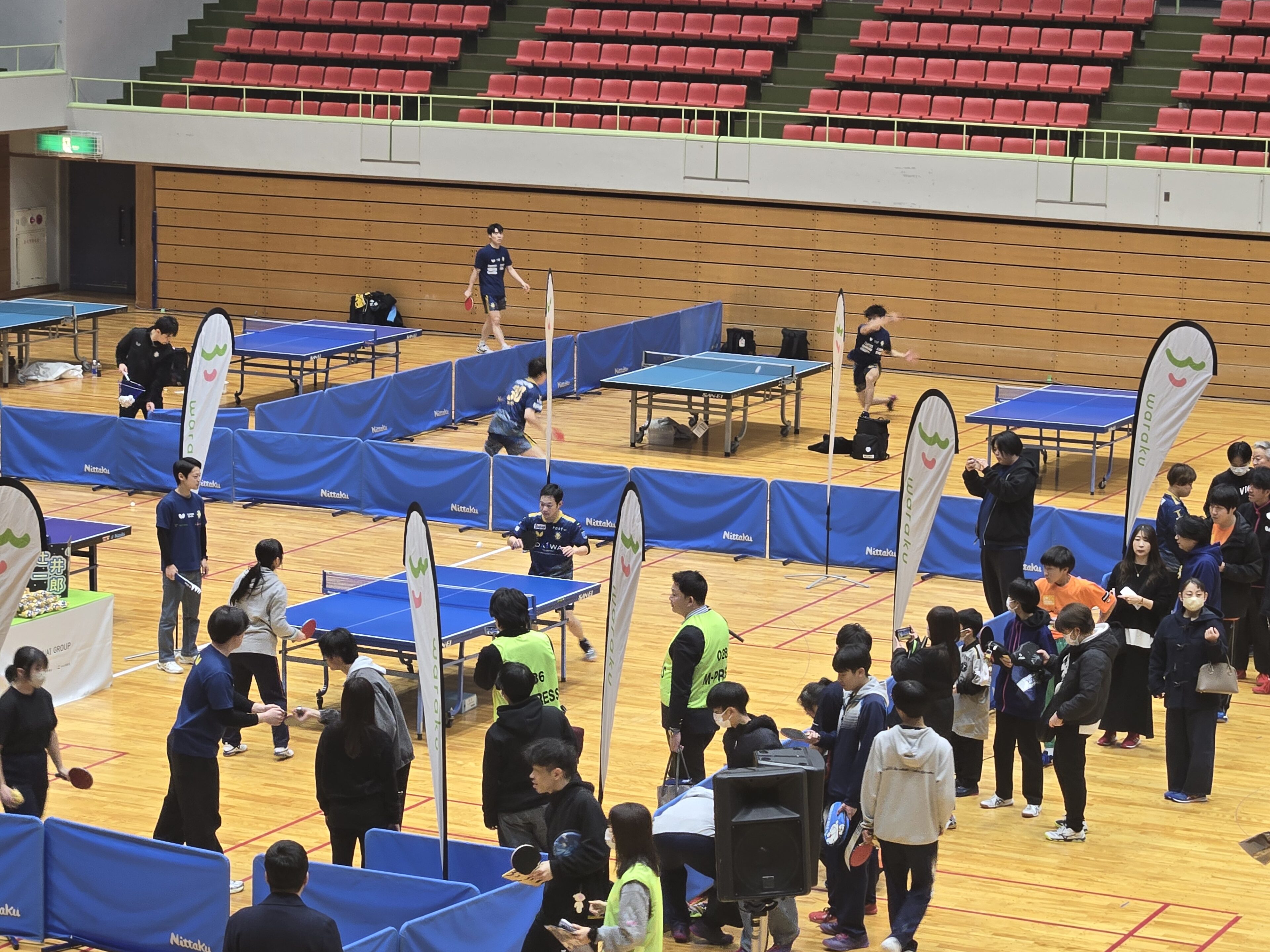 当社が金沢ポートのユニホームスポンサーを務めるご縁から福井県敦賀市での開催が実現しました。卓球を頑張っている地元の小・中学生やファンの皆様にとっては貴重な経験です。これも地元企業として大切な地域貢献の一助です(*‘ω‘ *)