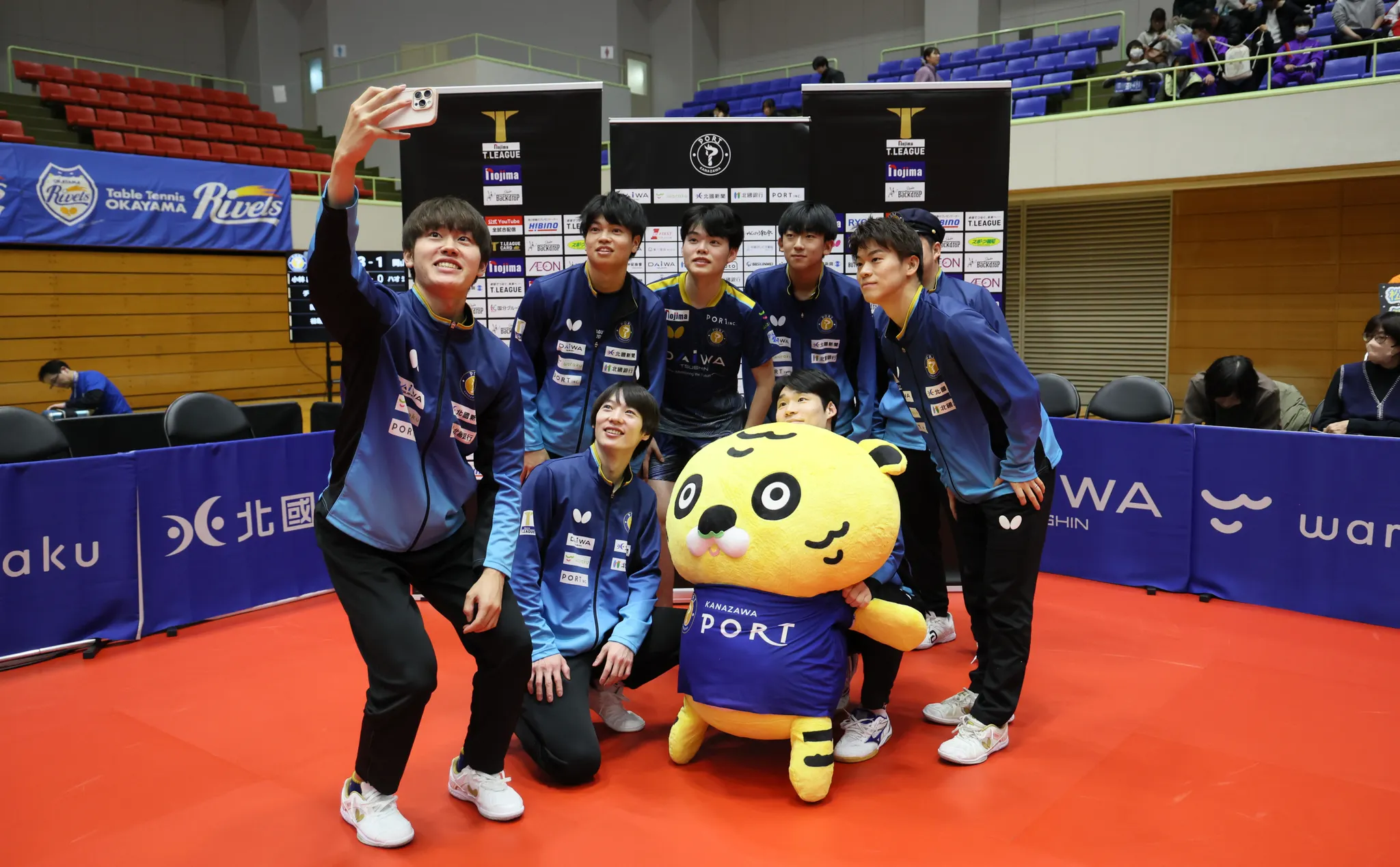 すごいぞ金沢ポート!!!('◇')ゞwaradoraちゃんも選手と共に記念写真🐯