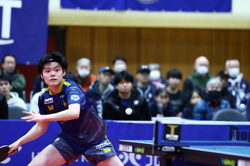 地元・小松総合体育館は、立ち見が出るほどの超満員。第1マッチでは、小林広夢・吉田雅己ペアが、目にも止まらぬ高速卓球で琉球ペアを圧倒!会場のボルテージは一気に最高潮へ達しました(∩´∀`)∩